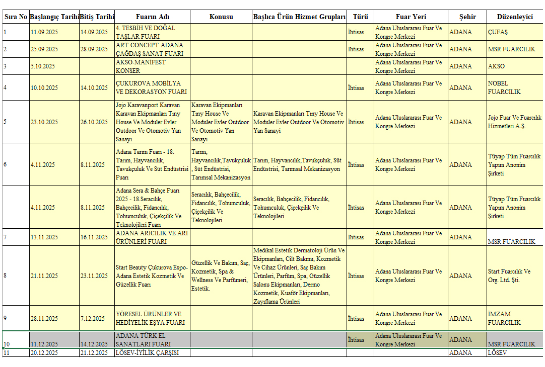 Fuar Başlangıç Tarihi: 11.01.2025 Bitiş Tarihi: 01.01.2026